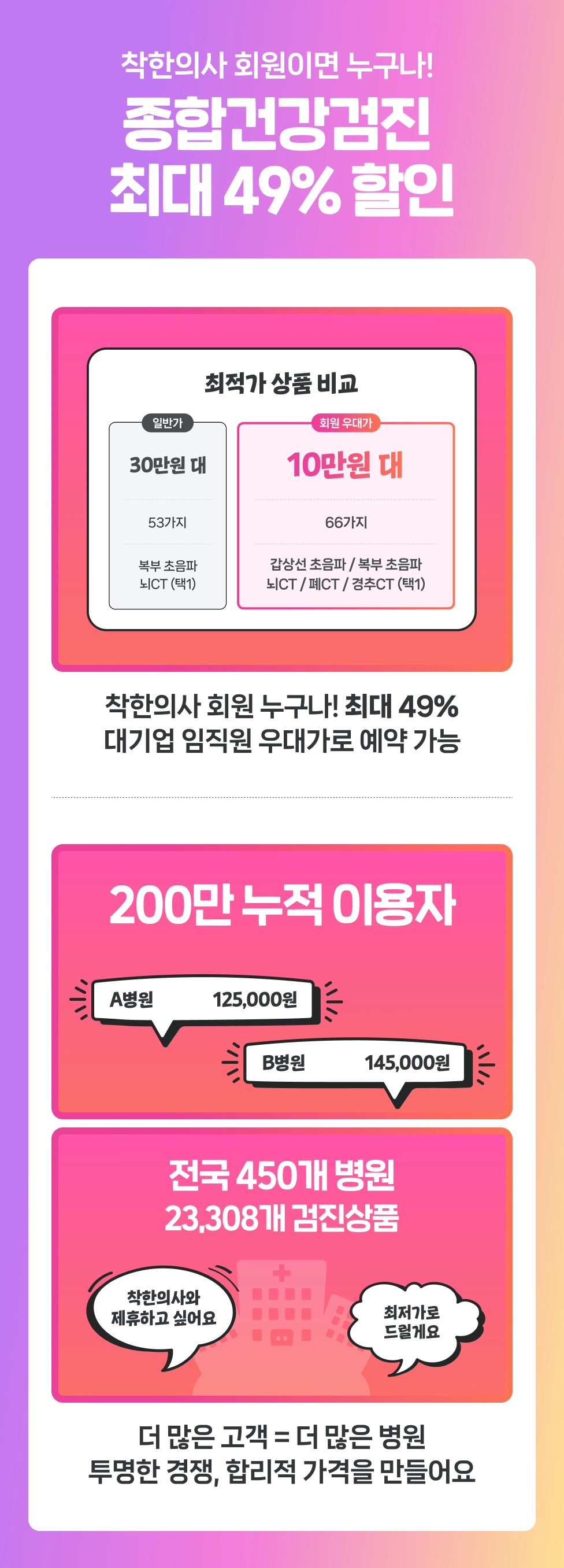 본 이벤트는 착한의사 개인 고객을 대상으로 진행하며, 특정 병원에 대한 광고 또는 알선이 아님을 안내드립니다.